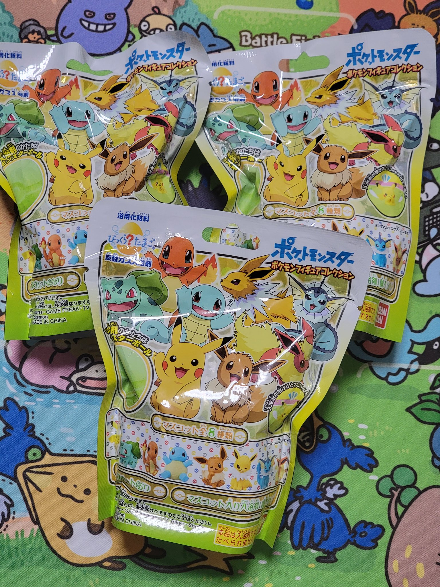 「びっくらたまご」シリーズの中でもポケモンは入浴剤が溶けると、中からモンスターボール型の浮きが付いたマスコットが出てくるので人気がありますね。