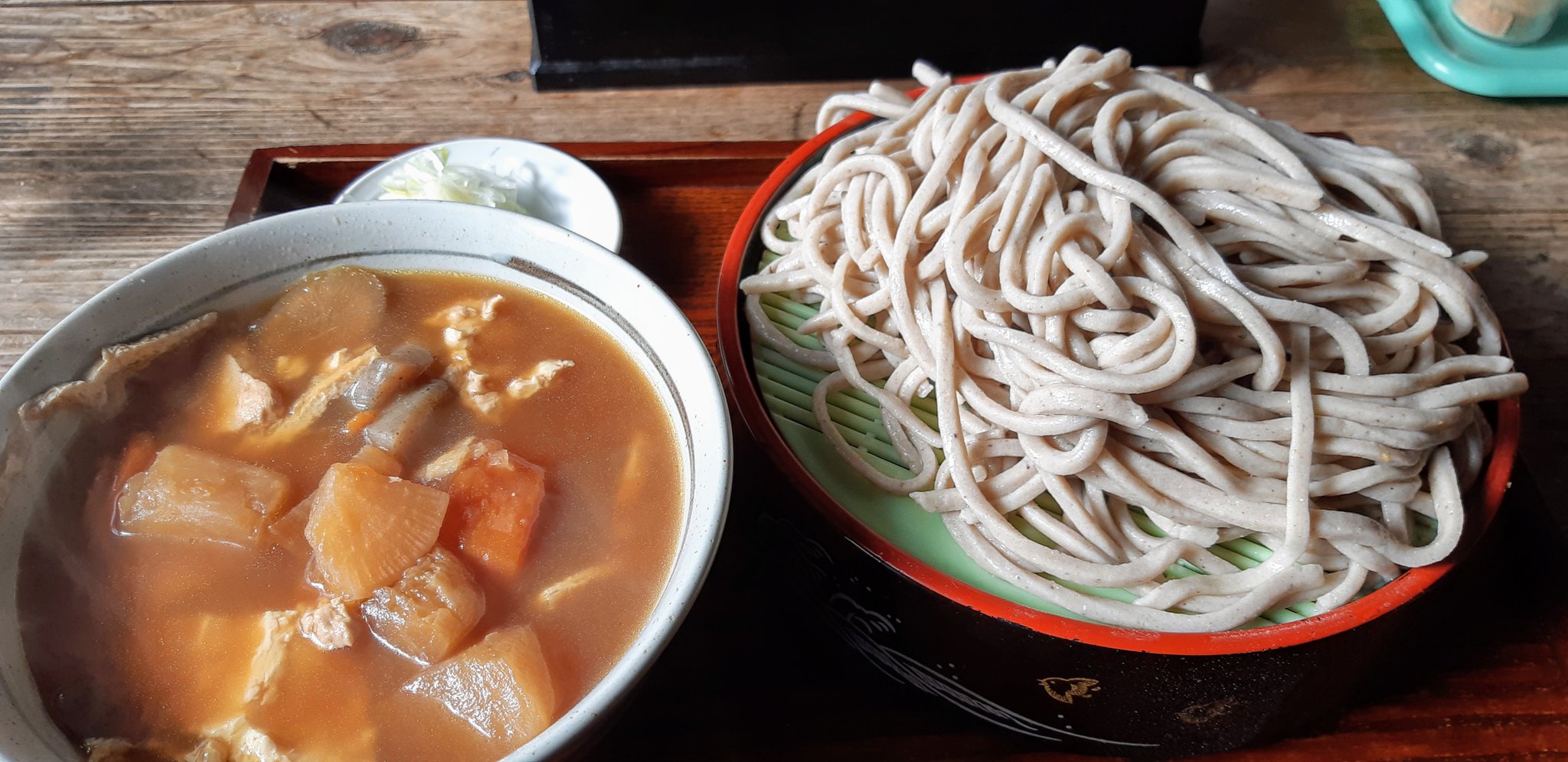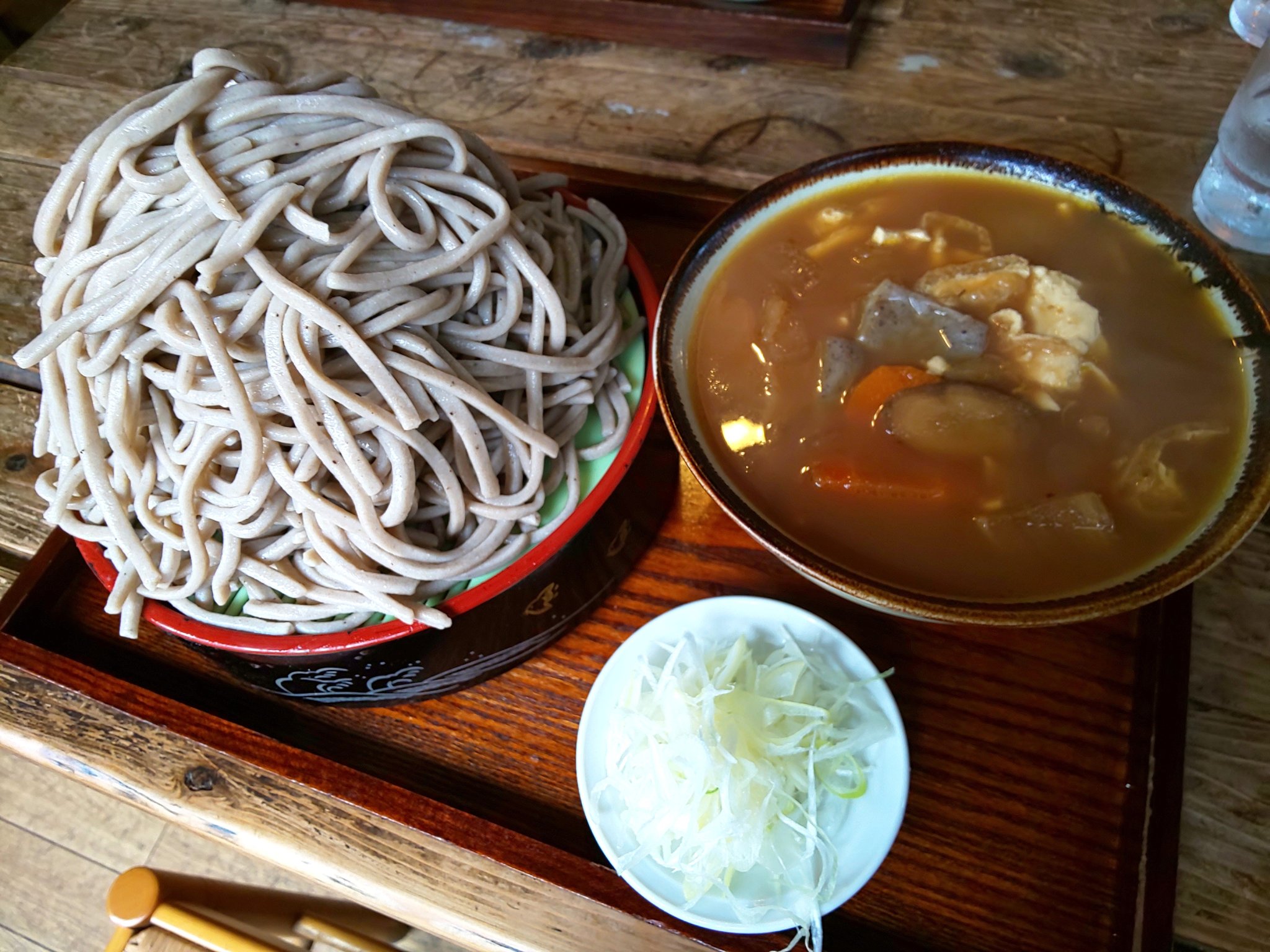 普通盛りでそばが500g、麺も激太でけんちん汁は具だくさんで野菜もゴロゴロに入っています。