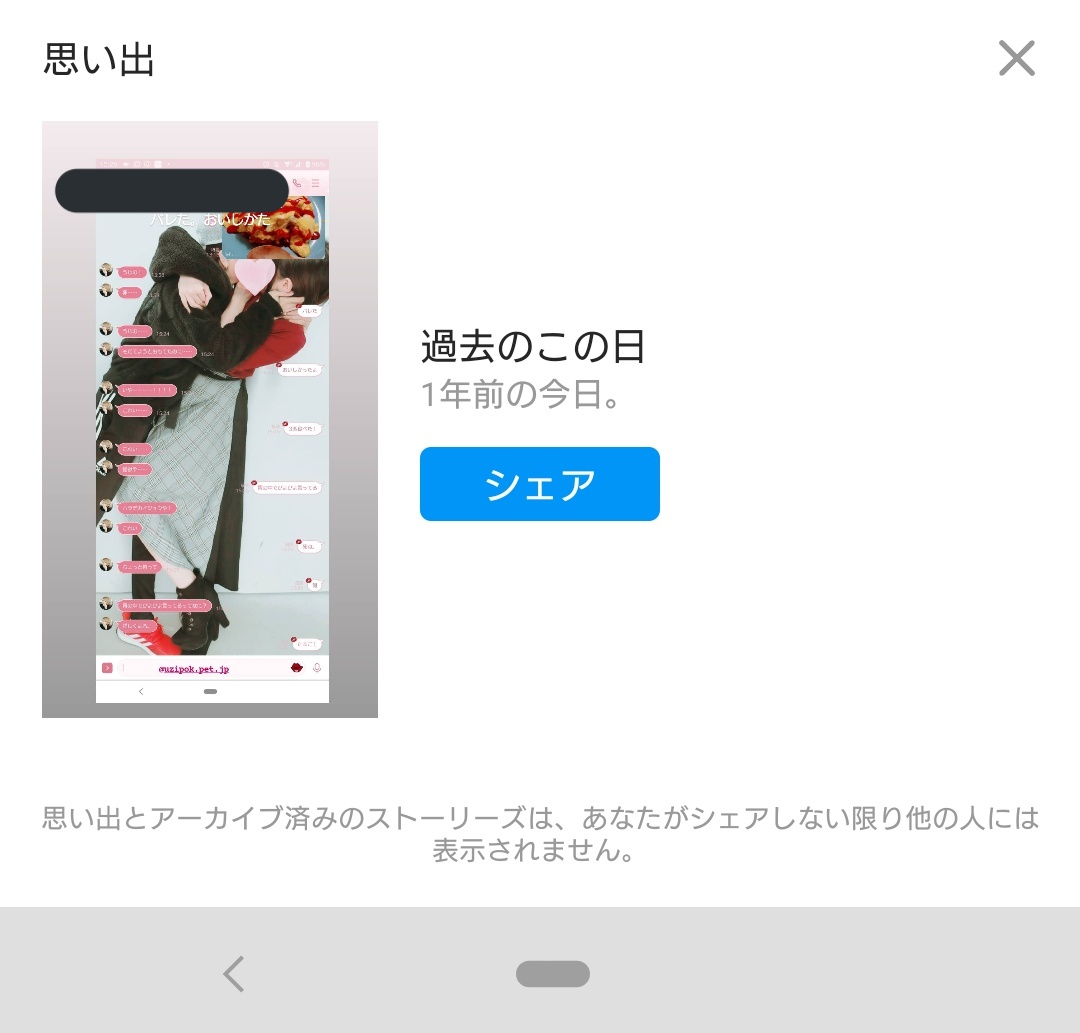 そこでキャプションや場所やタグ付けをした後(勿論これもしなくても良い)シェアというボタンを押せば普通に投稿できます。