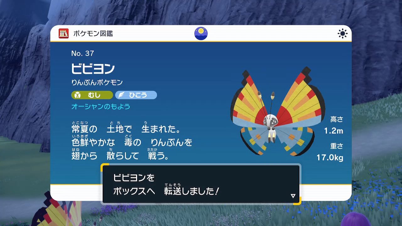 ポケモンsvでポケモンGOと連携するとビビヨンの模様・姿違いが入手できるようになりました。
