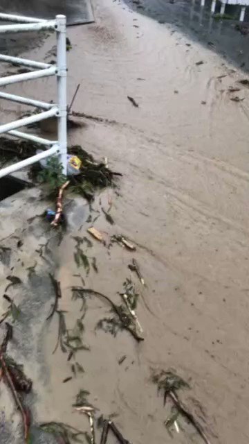 住民によると、安佐南区八木では水があふれ、午前7時半頃から冠水しているという。