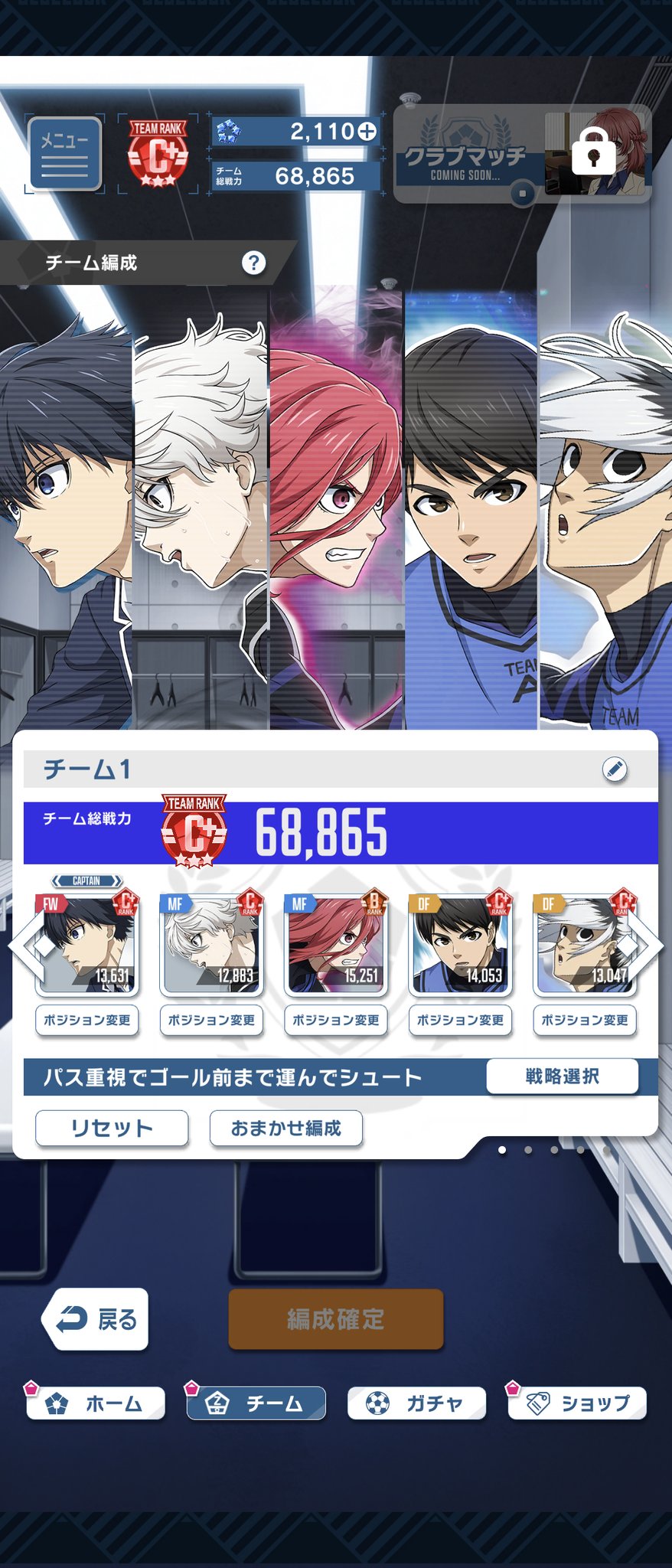 スマホゲームアプリ『ブルーロック Project: World Champion(ブルーロックPWC)』でキャラがいるのに編成が出来ない!