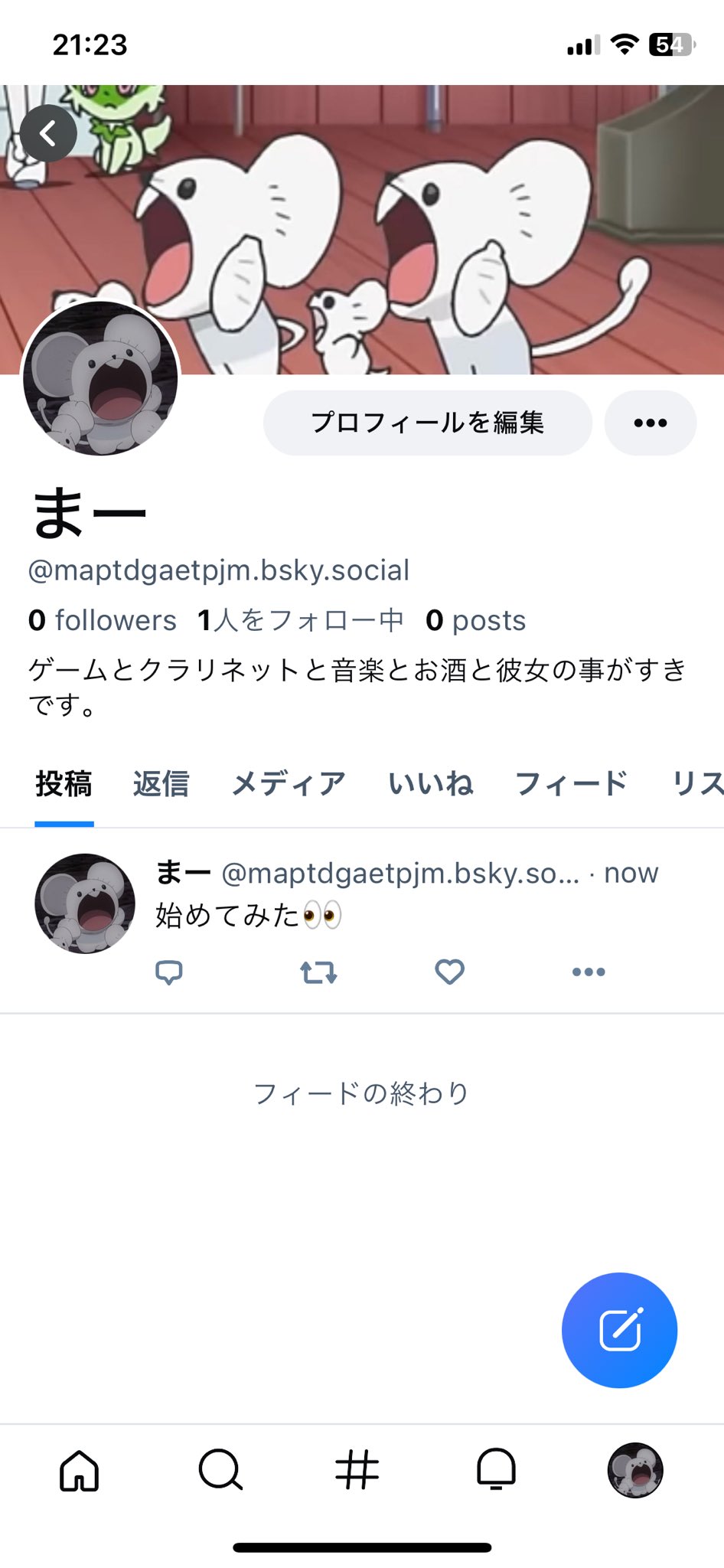 Bluesky アプリを開き、プロフィールに移動します。
