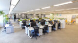 採光豊かな広いオフィス空間と、会議室・重役室・セキュリティゲート配置のエントランススペース・受付カウンター・廊下があり、様々なオフィスシーンの撮影に活用できます。