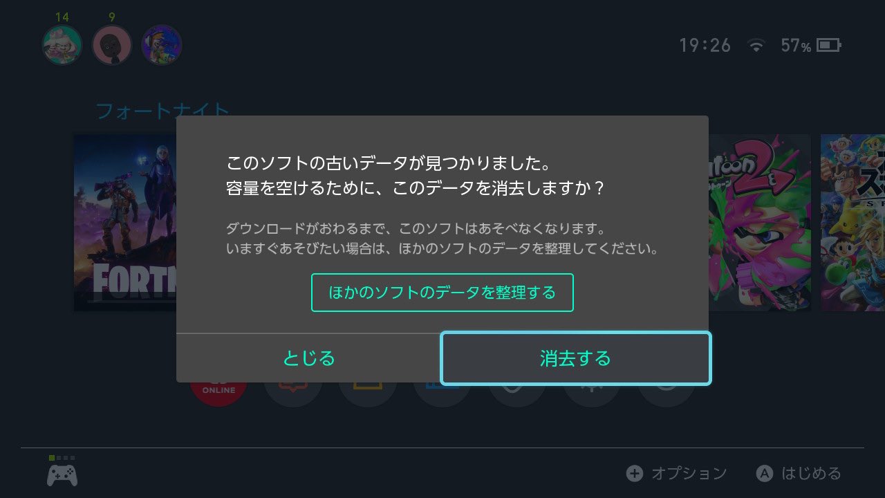 フォートナイト「このソフトの古いデータが見つかりました」switch版