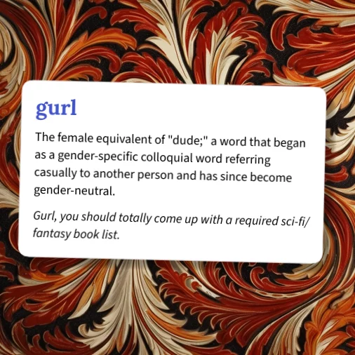 gurl: The female equivalent of "dude;" a word that began as a gender-specific colloquial word referring casually to another person and has since become...
