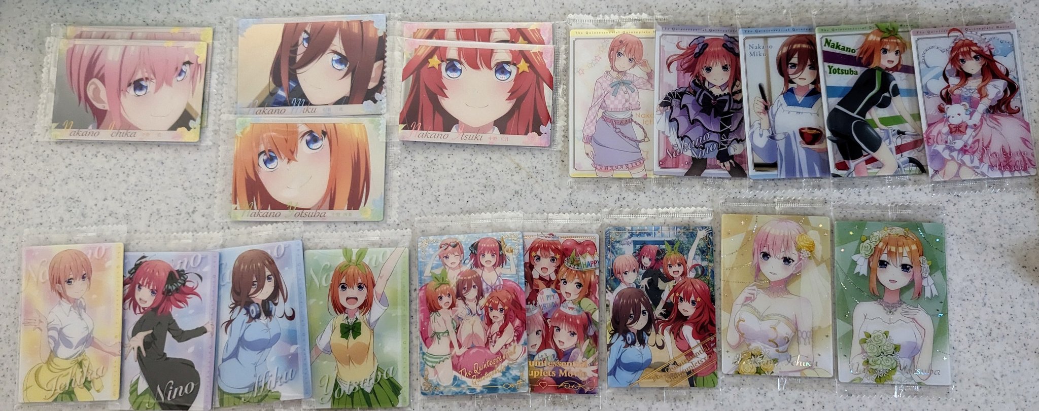 カードは全25種で、卒業の日をイメージした集合イラスト、オリジナルドレス姿の五つ子の描き下ろしイラストを含む。スペシャルカードはホロ箔(はく)押し、ビジュアルカードは金色箔押しの特別仕様となる。