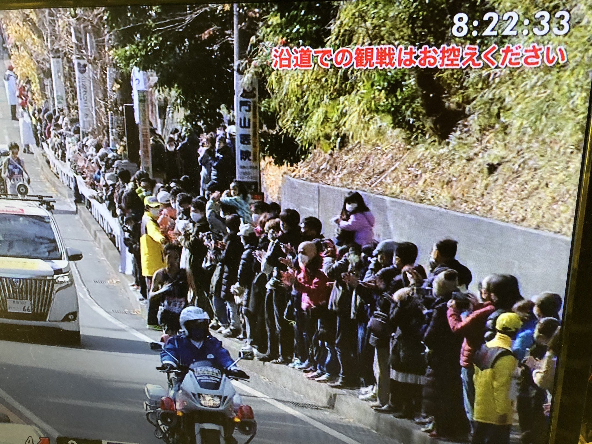 「沿道での観戦はお控えください」ってテロップの下に観戦してる人がたくさん映ってるのなかなかシュール