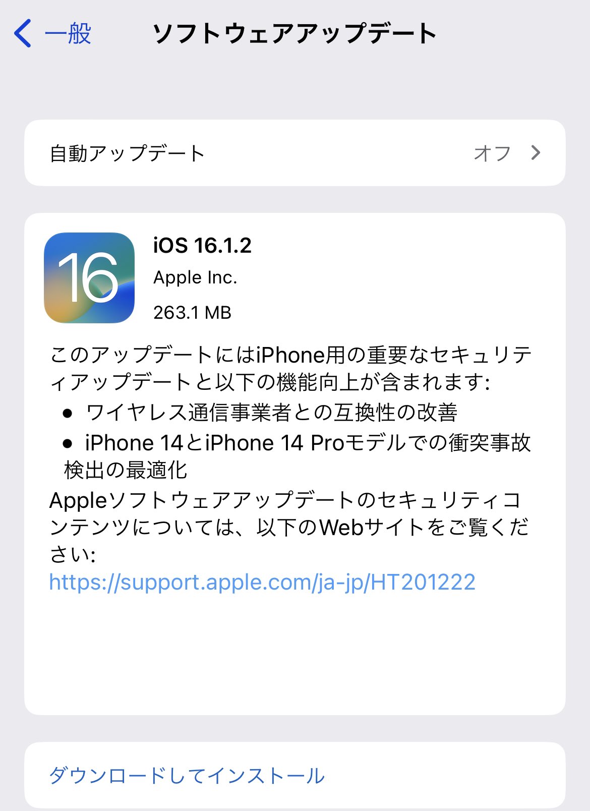 iOS16.1.2が2022年10月25日(日本時間)にリリースされました。