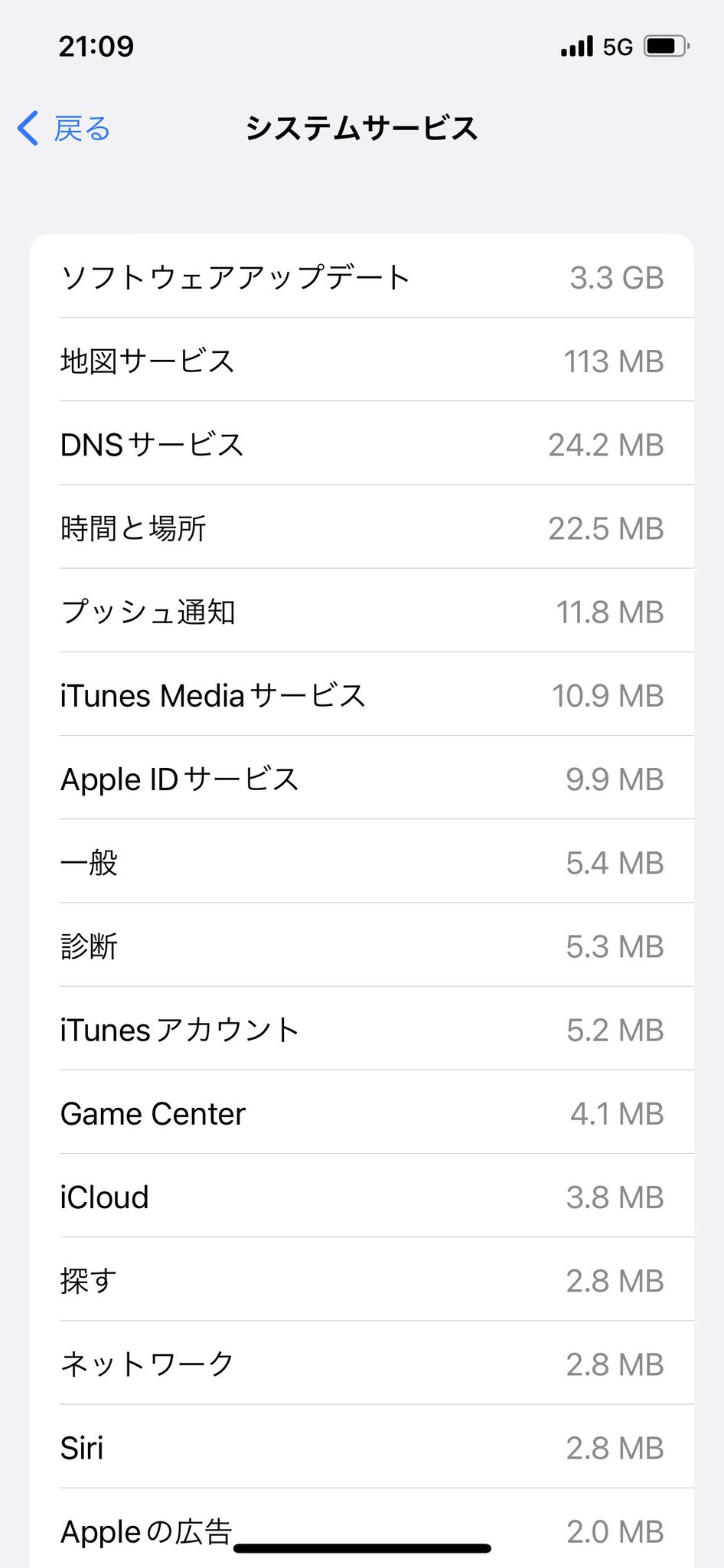 iOS16にアップデートしたところ、モバイルデータ通信のシステムサービスにあるソフトウェアアップデートの通信量・ギガが増えた?