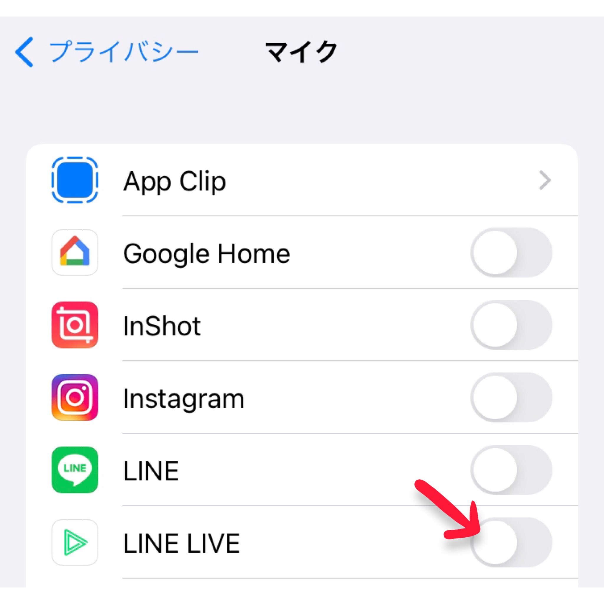 設定→プライバシー→マイク
