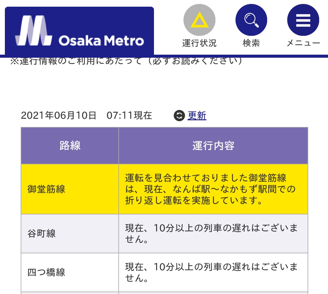 — Osaka Metro 運行情報 (@osakatransport) June 9, 2021