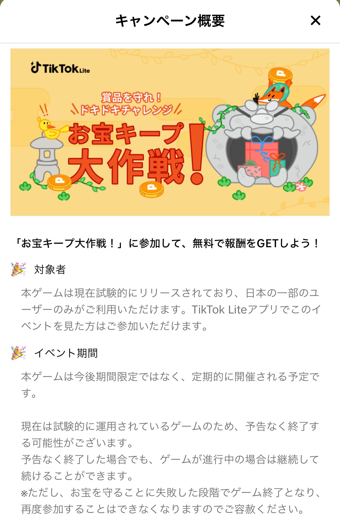 本ゲームは現在試験的にリリースされており、日本の一部のユーザーのみがご利用いただけます。 TikTok Lite アプリでこのイベントを見た方はご参加いただけます。