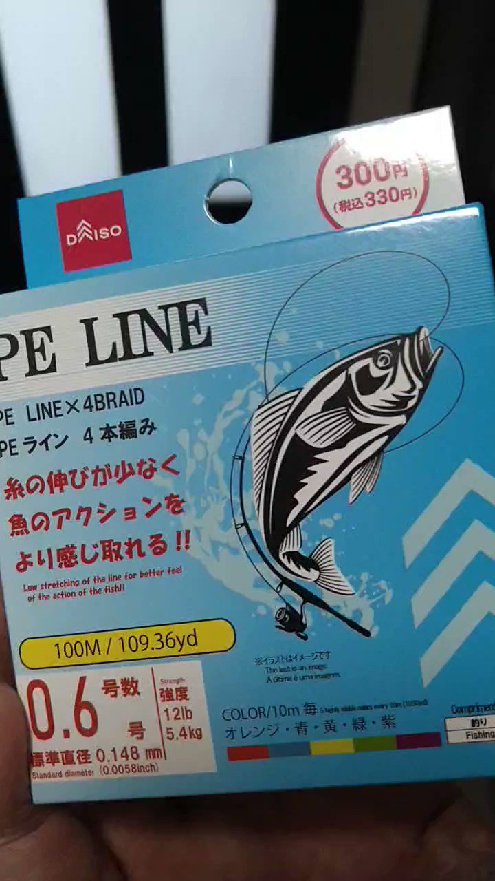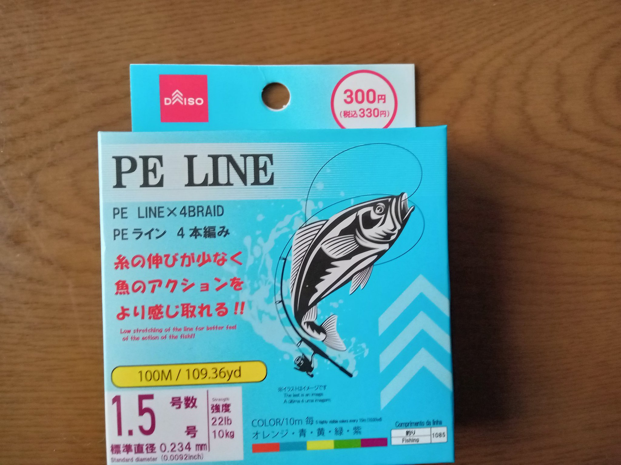 釣具は100均で売ってますが、peラインを売ってるのは現時点ではダイソーのみ。