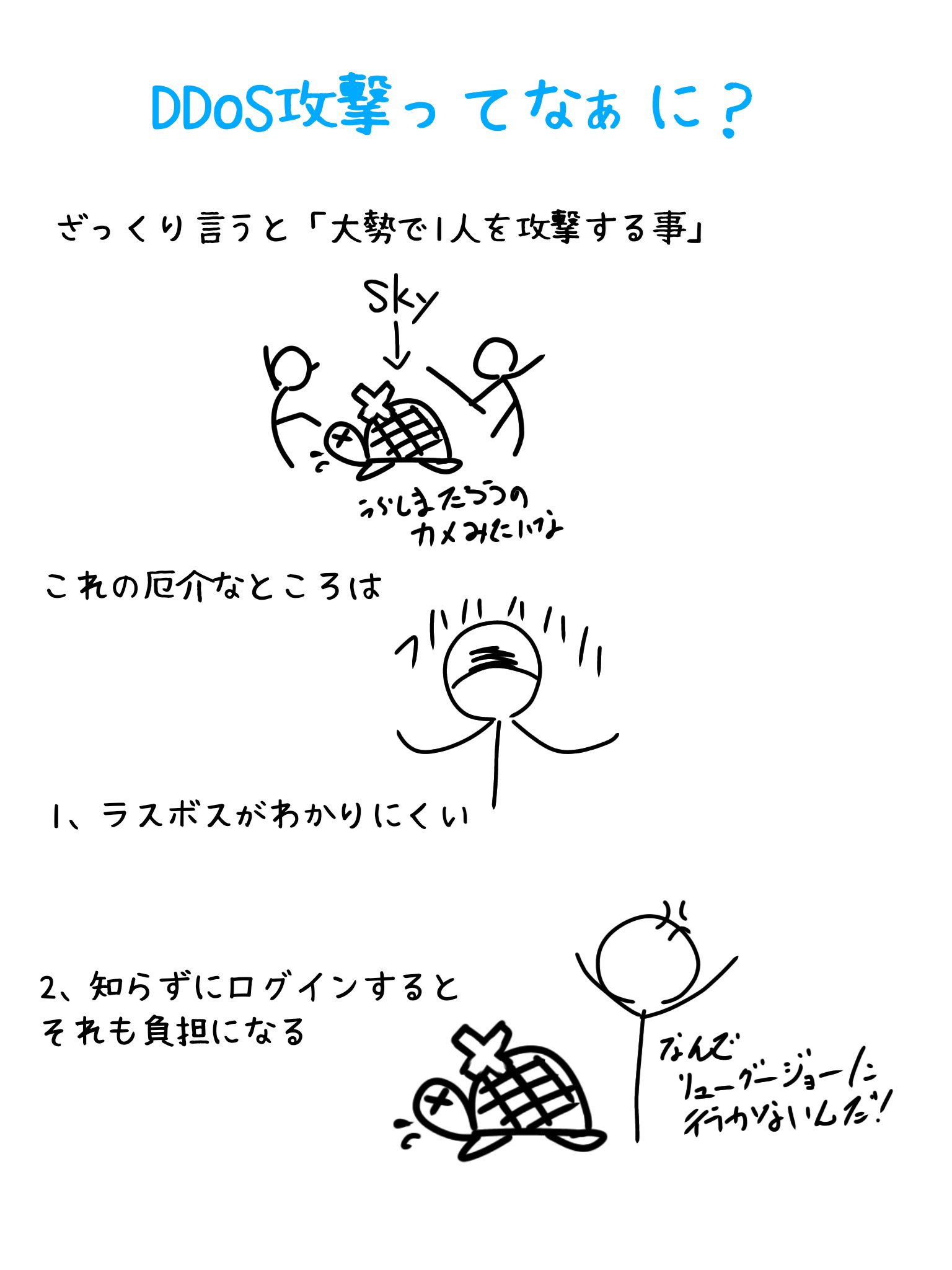 公式Twitter自らが「Skyの本質は思いやり、友情、博愛主義」というほど平和的なゲームですが、ここ数日で遅延やサーバー切断など不安定な状況が発生しています。これは何者かによるDDoS攻撃を受けているためであり、解消に努めているとのことです。