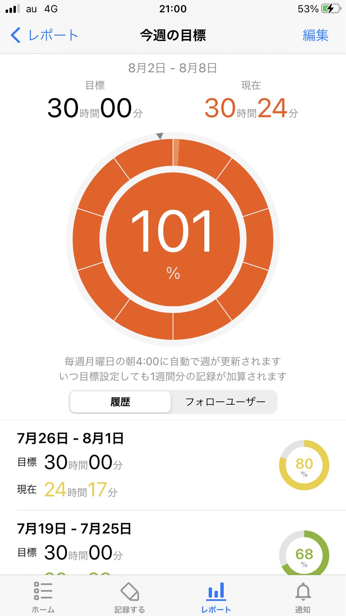 目標達成報告は記録の公開設定が非公開でも、プロフィールには載ってしまうので他の人に見せないことはできないようです。
