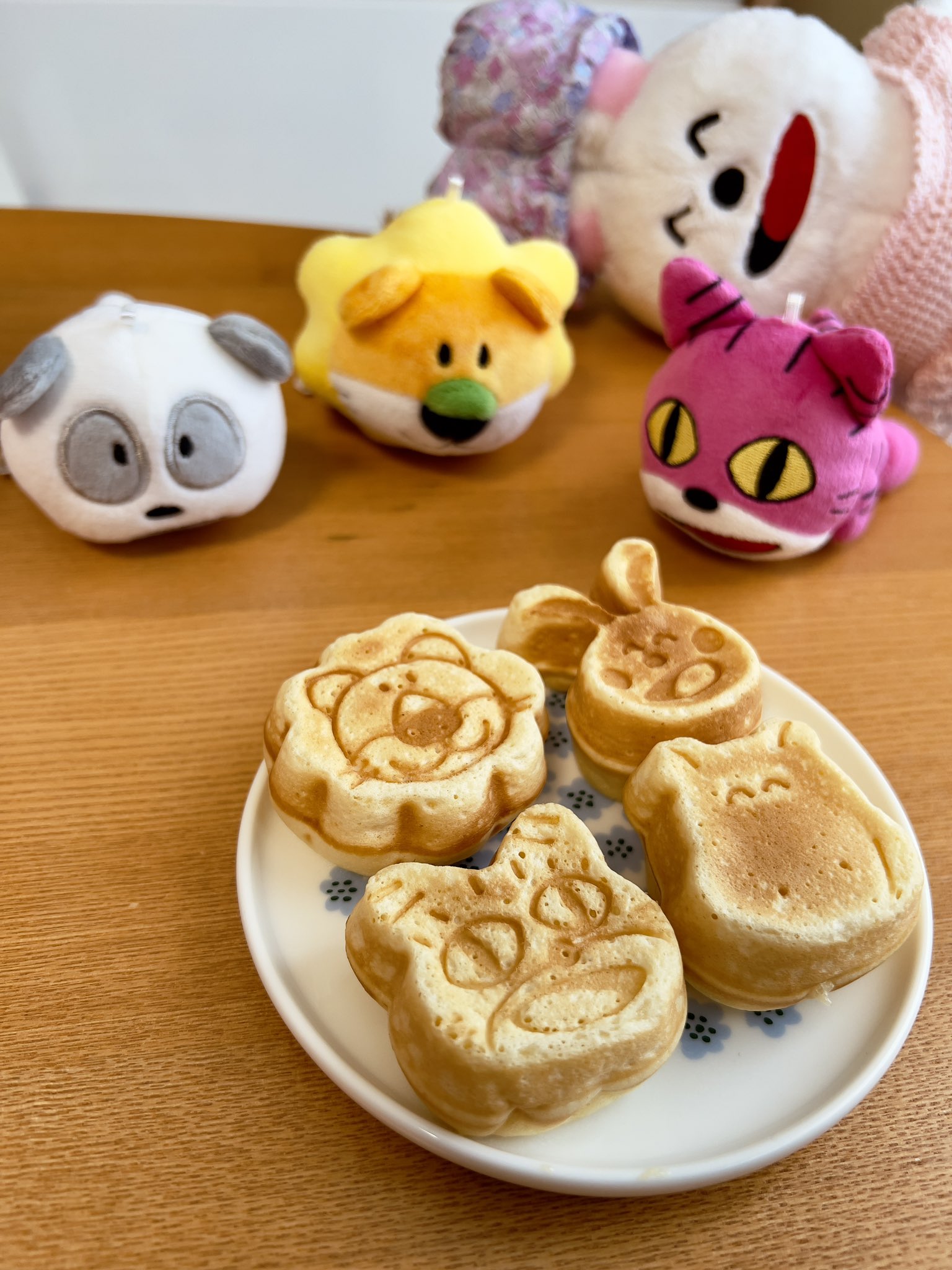 「たべっ子どうぶつカステラメーカー」はホットケーキミックスなどの材料を型に流して焼き上げると、「らいおんくん」「かばさん」「うさぎさん」「ねこさん」の4キャラクターのカステラが一度に出来上がります。