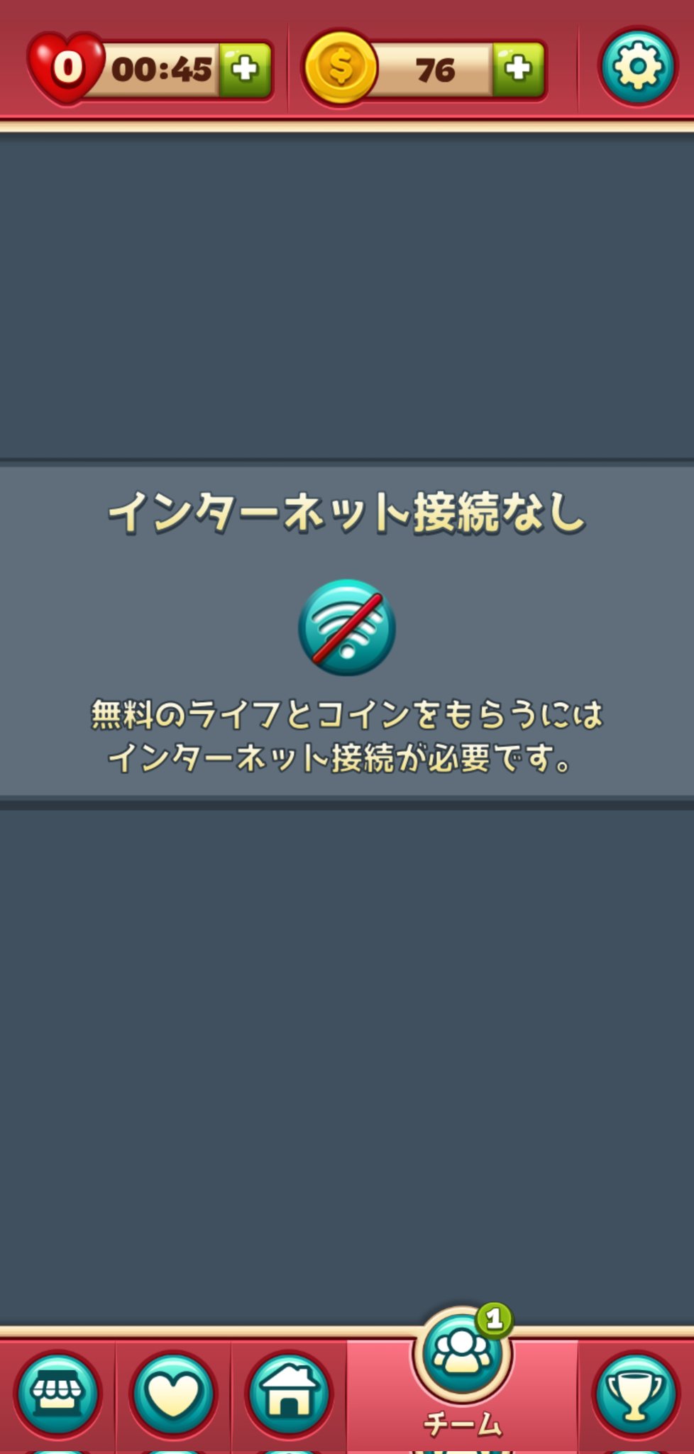 トゥーンブラストが接続エラーで「インターネット接続なし」と表示される不具合が報告されています。