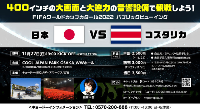 ・11月27日(日曜日) 19:00キックオフ (日本 対 コスタリカ)