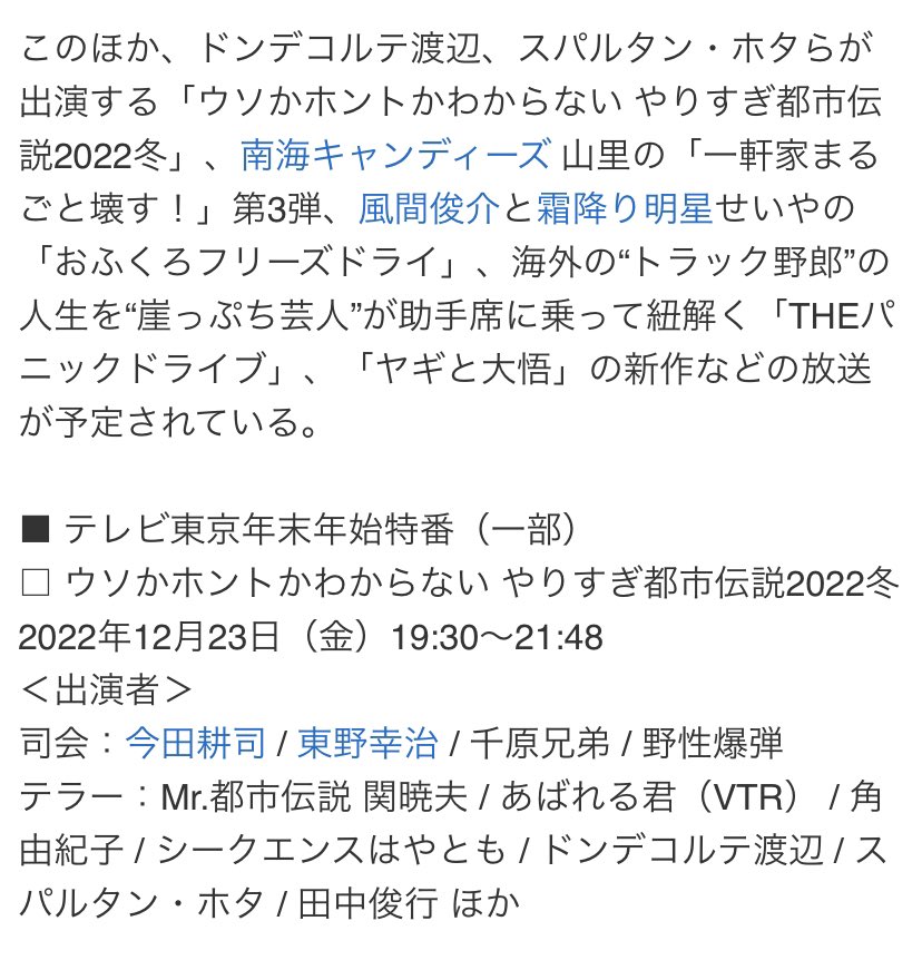 やりすぎ都市伝説2022冬の放送情報は次のとおり