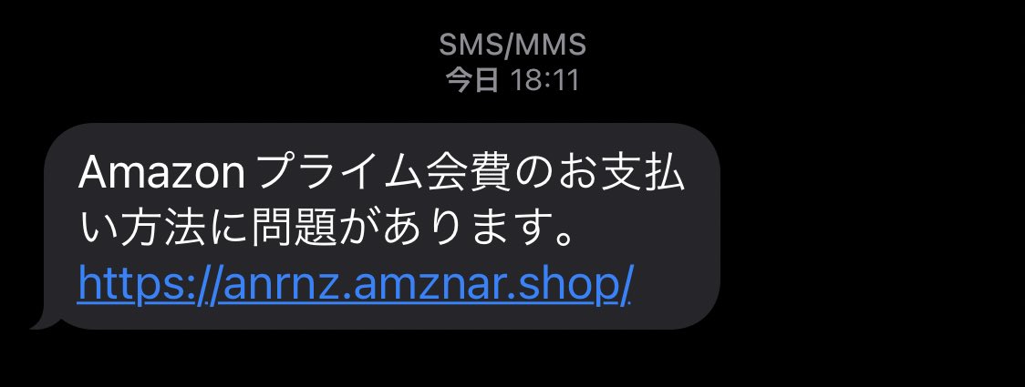 yonibyのSMSで「Amazonプライムのお支払いに問題があります」aisnto.date